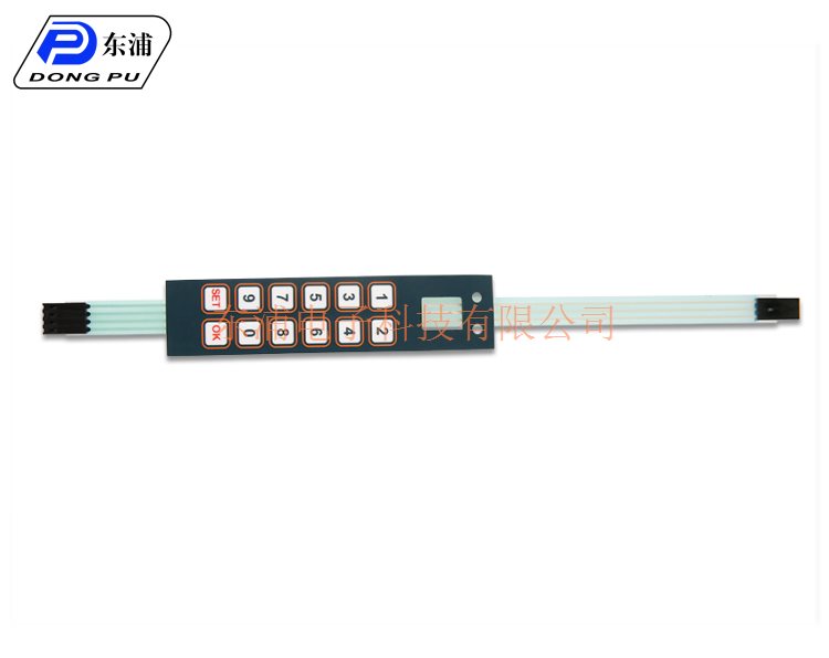 東浦電子專業生產薄膜開關是具有一定彈性的絕緣材料層組成的一種多層結構(平面)型(非制鎖)按鍵開關,集成線路。按鍵、指示元件、儀器面板等功能為一體。薄膜開關的動作只由彈性薄膜的垂直方向彈動實現,彈性薄膜雖然經過百萬次的蠕動,且蠕動時的幅度很小,僅為0.1-0.3MM,加之材料選擇的合理性,因此薄膜材料能夠承受一百萬次以上的大壽命而不變形,這些都是決定了薄膜開關的耐久性。