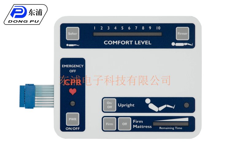 東浦電子專業生產薄膜開關是具有一定彈性的絕緣材料層組成的一種多層結構(平面)型(非制鎖)按鍵開關,集成線路。按鍵、指示元件、儀器面板等功能為一體。薄膜開關的動作只由彈性薄膜的垂直方向彈動實現,彈性薄膜雖然經過百萬次的蠕動,且蠕動時的幅度很小,僅為0.1-0.3MM,加之材料選擇的合理性,因此薄膜材料能夠承受一百萬次以上的大壽命而不變形,這些都是決定了薄膜開關的耐久性。