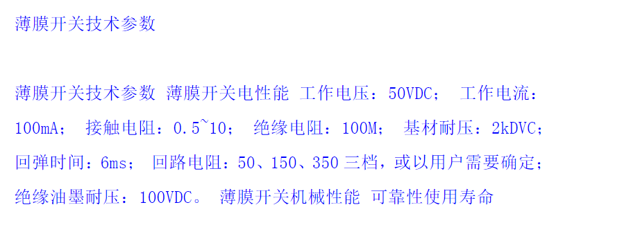 面膠最主要的作用是將面板層與電路層緊密相連,以達(dá)到密封和連接的效果,此層一般要求厚度在0.05-0.15MM之間,具有高強(qiáng)的粘性和防老化性;在生產(chǎn)中,一般選用專用的薄膜開關(guān)雙面膠,有些薄膜開關(guān)要求能防水防高溫,因此面膠也必須根據(jù)需要而使用不同性質(zhì)的材料。